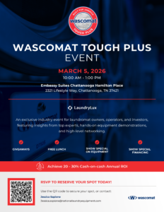 That’s why National Laundry Equipment, in partnership with Wascomat, is hosting the Wascomat Tough Plus Event on March 5, 2026, in Chattanooga, Tennessee — an exclusive industry event designed for laundromat owners, operators, and investors who want to build real businesses, not just busy stores.